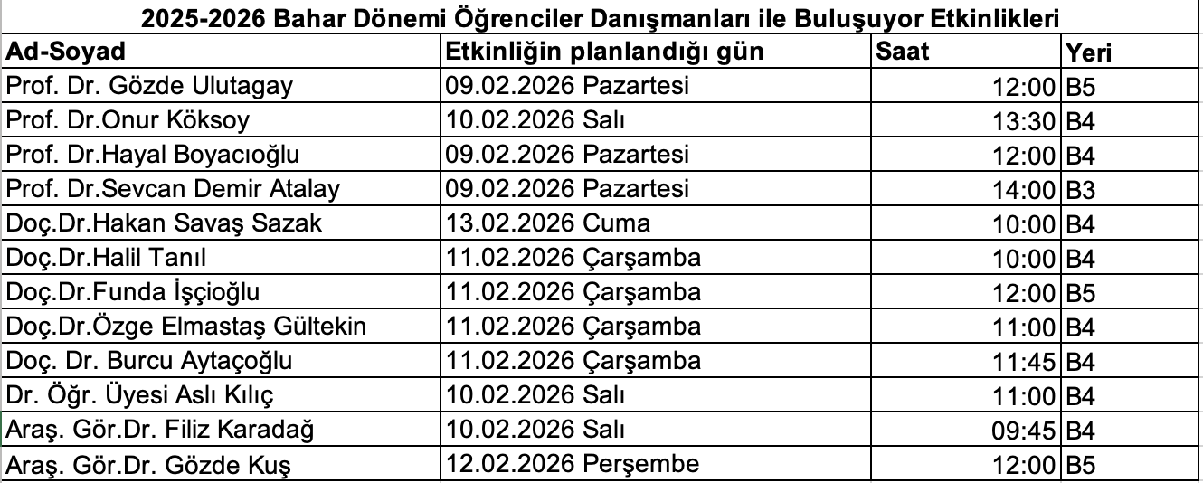Öğrenciler Danışmanlarıyla Buluşuyor Etkinlikleri 2025-2026 Bahar Duyurusu
