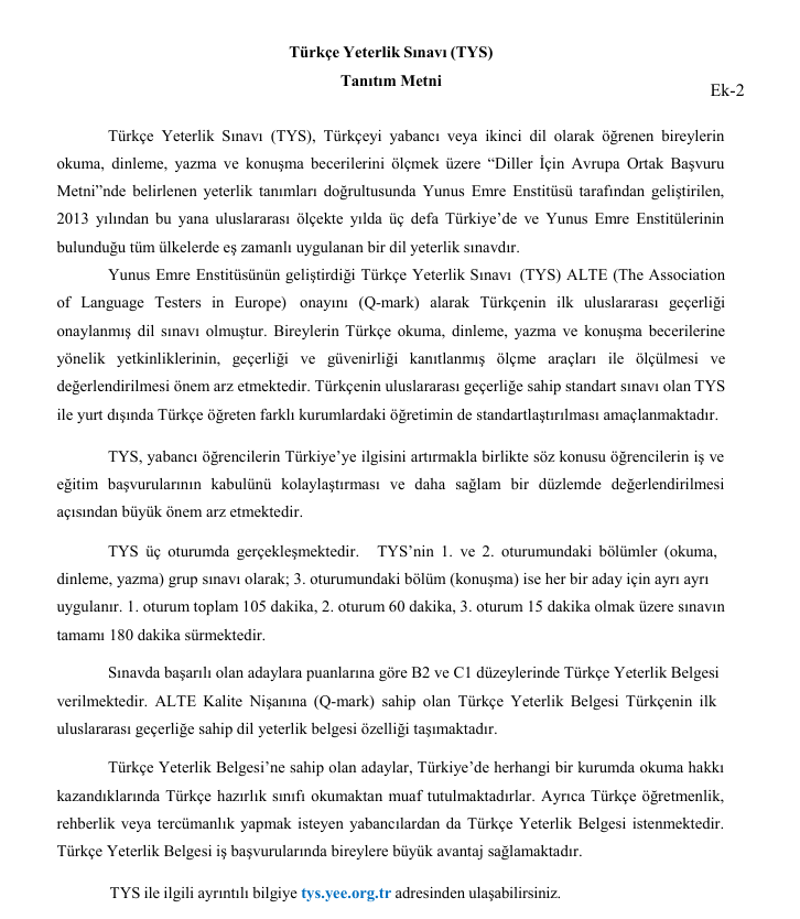 Türkçe Yeterlilik Sınavı (TYS) Duyurusu